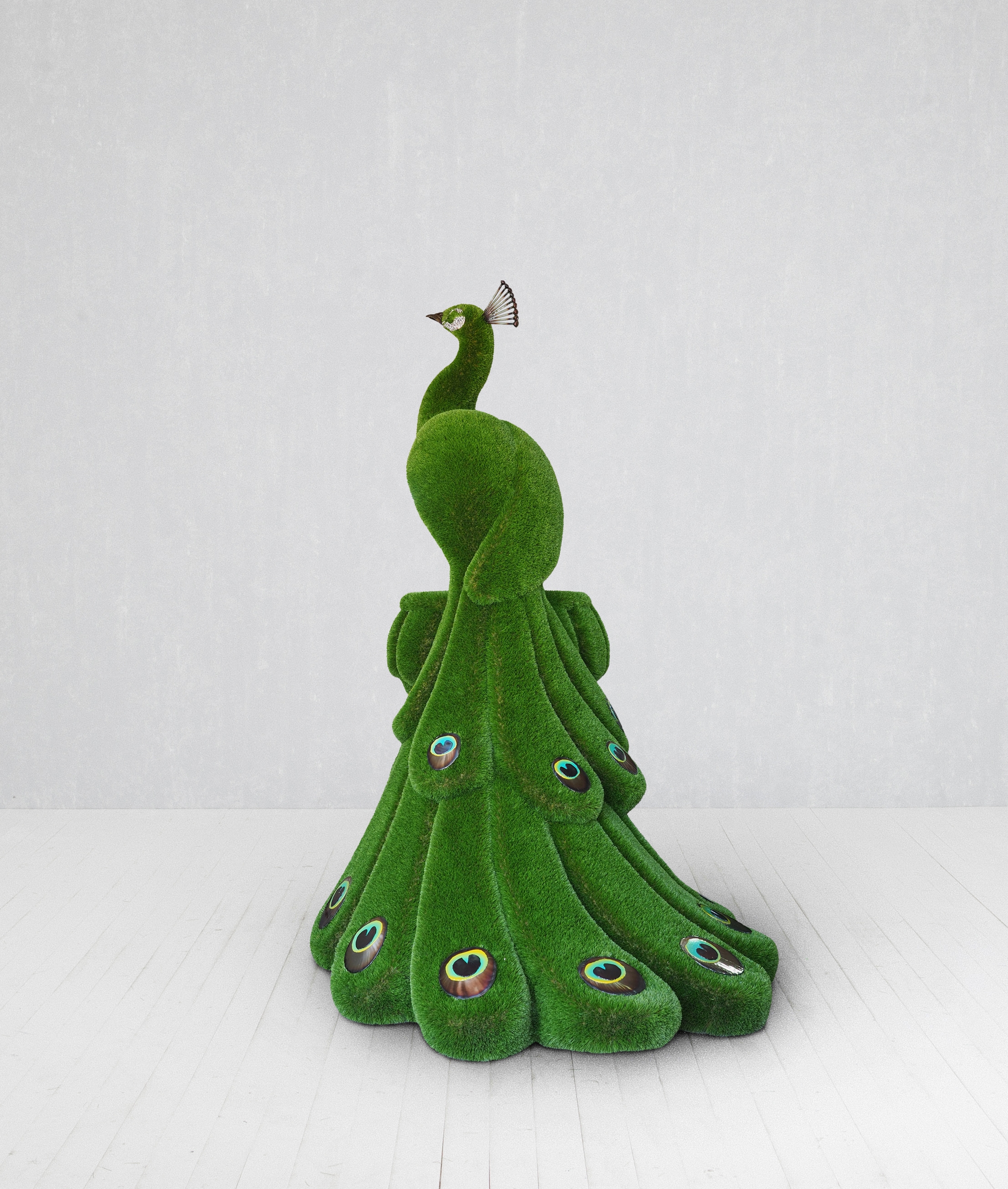 Tavus kuşu, ihtişam, özgüven ve bilgelik; vazo ise zarafet, koruma ve estetik taşıyıcılığı simgeler. Bu iki öğenin birleşimiyle ortaya çıkan bu heykel, yalnızca bir dekorasyon objesi değil, aynı zamanda doğa ve sanatın uyumlu birlikteliğini yansıtan anlamlı bir eserdir.